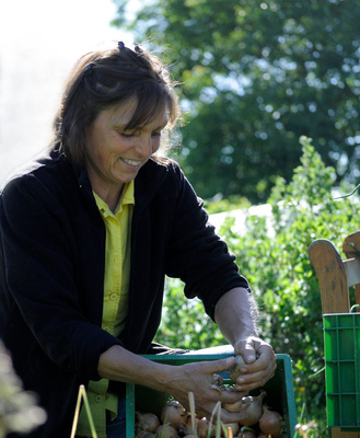 Der Mädelhof baut Getreide (Weizen und Roggen) und Hackfrüchte an. In Ihrer Kiste finden Sie Ritters Zwiebeln, Lauch, Kohlarten, Sauerkraut (selbst eingelegt – hmmm), Rote Bete, Steckrüben, Rhabarber, Zwetschgen und Kirschen … und natürlich „Anuschka“.