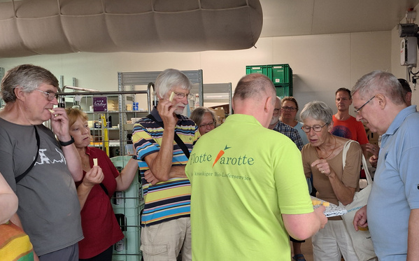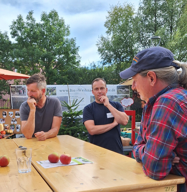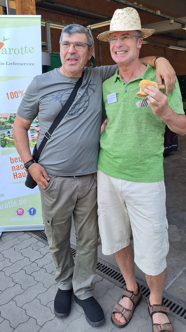 Zum Gesprächskreis stieß auch Dirk Liedmann von der Kornkammer Haus Holte dazu. Unter der Moderation von Christian Goerdt kam es zu einem Austausch von geballtem Bio-Wissen, Wertschätzung, Respekt und Herzlichkeit. Eines wurde in den Gesprächen deutlich: Wir arbeiten seit vielen Jahren mit den richtigen Partnerbetrieben zusammen – jeder Einzelne brennt für seine Arbeit und kämpft, auch unter schwierigen Bedingungen, Tag für Tag aufopferungsvoll für eine gute Ernte. So können wir alle leckeres und gesundes Gemüse kaufen. Alle Fragen der Besucher wurden ausführlich beantwortet. Diese Gesprächsrunde wird in einer anderen Form bei uns bald fortgeführt, um mit euch im Austausch zu bleiben – wenn es soweit ist, werden wir euch informieren.