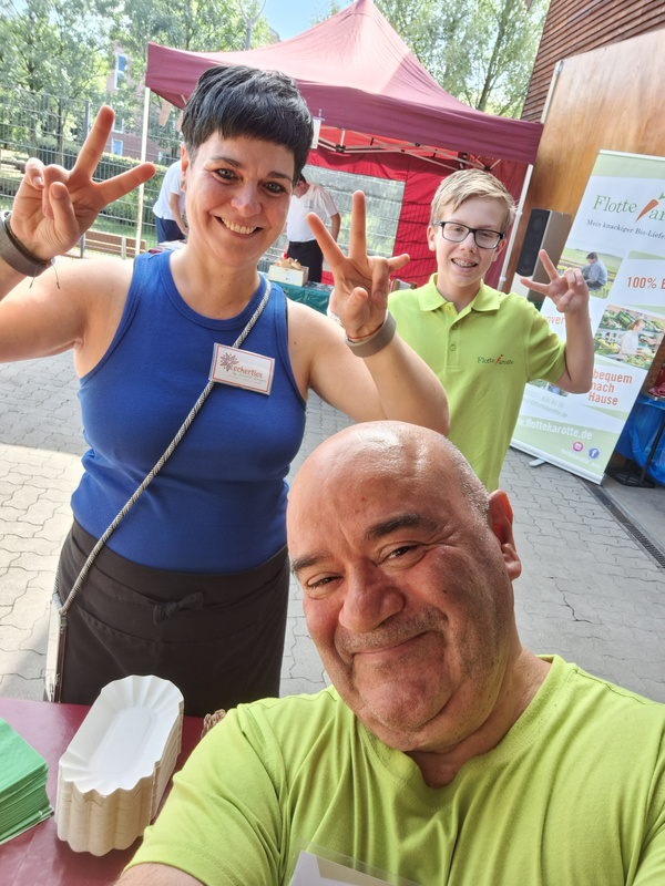 Am Samstag konnten wir den wohl letzten wirklich heißen Spätsommertag in diesem Jahr mit euch verbringen. Ein großes Danke an Paul von „I AM LOVE“, der uns mit super-leckerem Eis die notwendige Erfrischung bot. Während der gesamten Zeit stand Simone Lenzen von LECKERBOX parat, um mit kleinen und großen Besuchern aus knackigem Gemüse und Obst kleine Kunstwerke für die Frühstücksbox zu schnitzen.