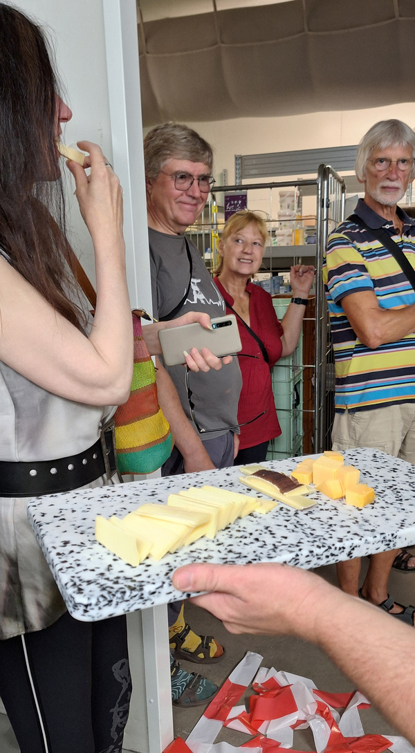 In diesem Rahmen wurde auch unser neuer Käse-Schneideraum eröffnet – oder besser gesagt: gestürmt, denn alle Kinder rissen auf Kommando die Absperrung ein, und somit war der Weg frei zu vielen leckeren Käsesorten, die wir euch in Zukunft anbieten und selbst schneiden werden. Eine kleine Kostprobe gab es bereits am Samstag: Die Besucher probierten den Möhrengouda von Bastiaansen, das „Blaue Wunder“ von bioladen (Aurora) und „Tiroler Gipfelglühen“ von BIOvomBERG, die uns freundlicherweise von den Käsereien zur Verkostung angeboten wurden.