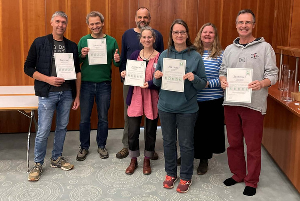 wir fühlen uns geehrt. Das können wir auch, denn der Verband Ökokiste, der uns zertifiziert, hat uns und andere Betriebe für hohe Punktzahlen, bei der Erfüllung aller fünf Entwicklungsbereiche der Zertifizierung für das Jahr 2023, ausgezeichnet. Es handelt sich dabei um Produktqualität, Kundenorientierung, soziale Verantwortung, ökologische Entwicklung und verbandsinternes Engagement. Unser Chef Christian (rechts im Bild) hat sich daher auch sehr gefreut über die Auszeichnung.