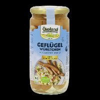 73% Geflügelfleisch* (Pute*, Huhn*)*, Trinkwasser, 10% Sonnenblumenöl*, Geflügelhaut*, Meersalz, Gewürze* (Pfeffer*, Ingwer*, Knoblauch*, Koriander*, Kümmel*), Dextrose*, Schafsaitling, Buchenholzrauch.| Energie | Fett | gesättigte Fettsäuren | Kohlenhydrate | Zucker | Eiweiss | Salz |