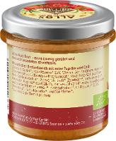 Rapsöl*, rote Paprika* (15%), Wasser, Sonnenblumenkerne*, Zitronensaft aus Zitronensaftkonzentrat*, Rote Bete-Saft aus RoteBete-Saftkonzentrat*, Agavendicksaft*, Zwiebeln*, Tomatenmark*, Meersalz, Paprika* edelsüß 1%, natives Olivenöl* extra, Eiweißpulver aus Sonnenblumenkernen*, Zwiebelpulver*, Chilipulver* (0,5%), Obstessig*, Tapiokastärke*, weißer Pfeffer*.| Energie | Fett | gesättigte Fettsäuren | Kohlenhydrate | Zucker | Ballaststoffe | Eiweiss | Salz |
