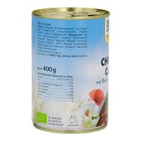 Trinkwasser, 32% Kidneybohnen*, 11% Fleisch* gegart (Rindfleisch*, Schweinefleisch*), Paprika*, Zwiebeln*, Mais*, Tomatenmark*, WEIZENMEHL*, Karotten*, Sonnenblumenöl*, Steinsalz, Maltodextrin*, Maisstärke*, Gewürze* (Paprika*, Muskat*, Curcuma*, Knoblauch*, Pfeffer*, Chili*), Kräuter* (Liebstöckel*, Oregano*, Basilikum*, Rosmarin*, Thymian*, Petersilie*), Meersalz, Rohrohrzucker*.| Energie | Fett | gesättigte Fettsäuren | Kohlenhydrate | Zucker | Ballaststoffe | Eiweiss | Salz |