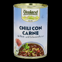 Trinkwasser, 32% Kidneybohnen*, 11% Fleisch* gegart (Rindfleisch*, Schweinefleisch*), Paprika*, Zwiebeln*, Mais*, Tomatenmark*, WEIZENMEHL*, Karotten*, Sonnenblumenöl*, Steinsalz, Maltodextrin*, Maisstärke*, Gewürze* (Paprika*, Muskat*, Curcuma*, Knoblauch*, Pfeffer*, Chili*), Kräuter* (Liebstöckel*, Oregano*, Basilikum*, Rosmarin*, Thymian*, Petersilie*), Meersalz, Rohrohrzucker*.| Energie | Fett | gesättigte Fettsäuren | Kohlenhydrate | Zucker | Ballaststoffe | Eiweiss | Salz |