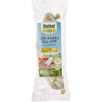 100g Produkt sind hergestellt aus 112g Schweinefleisch*, 38g Rindfleisch*, Meersalz, Gewürze* (Pfeffer*, Paprika*, Knoblauch*, Rosmarin*, Salbei*, Acerolakirsche*), Dextrose*, Trockenglukosesirup*. Nicht essbare Hülle.| Energie | Fett | gesättigte Fettsäuren | Kohlenhydrate | Zucker | Eiweiss | Salz |