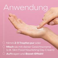 Trage 2-3 Tropfen auf die Haut auf oder mische sie mit deiner Gesichtscreme.Auftragen und Boost Effekt.