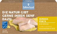 HERING**** 60%, SENFsauce* 40% (Wasser, Senfpaste* 12% [Senfkörner*, Essig*, Wasser, Salz], Sonnenblumenöl*, Kartoffelstärke*, Zucker*, Meersalz, Apfelessig*, Kurkuma*, Dill*).| Energie | Fett | gesättigte Fettsäuren | Kohlenhydrate | Zucker | Eiweiss | Salz |