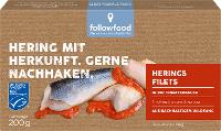 HERING**** 60% Tomatensauce* 40% (Tomatenmark* 18,4%, Wasser, Sonnenblumenöl*, Kartoffelstärke*, Zucker,* Apfelessig*, Meersalz, Zitronensaftkonzentrat*, schwarzer Pfeffer*, Zwiebelpulver*, Knoblauchpulver*, Basilikum*).| Energie | Fett | gesättigte Fettsäuren | Kohlenhydrate | Zucker | Eiweiss | Salz |