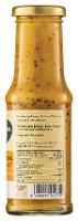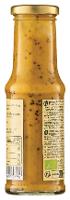 Wasser, Sonnenblumenöl*, Agavendicksaft* 13 %, Blütenhonig* 6,6 %, Branntweinessig°*, Dijon SENF* 5,3 % (Wasser, Branntweinessig°*, braune SENFSAAT*, Meersalz), braune SENFSAAT* 2,7 %, Meersalz, Maisstärke*, Zwiebeln*, Knoblauch*, Koriander*, schwarzer Pfeffer*, Paprika edelsüß*, Karottensaftkonzentrat*, Sonnenblumenkernmehl*, Verdickungsmittel: Guarkernmehl*| Energie | Fett | gesättigte Fettsäuren | Kohlenhydrate | Zucker | Eiweiss | Salz |