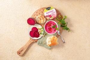 Kichererbsen* gegart (49%), Rote Beete* gegart (19%),Apfelwürfel*, konzentrierter Apfelsaft*, Sonnenblumenöl* Weißweinessig*, konzentrierter Rote Beetesaft*,Meersalz, konzentrierter Zitronensaft*, Kümmel*| Energie | Fett | gesättigte Fettsäuren | Kohlenhydrate | Zucker | Eiweiss | Salz |