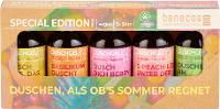benecosBIO Sommer-Edition BIO-Pfirsich: AQUA, PYRUS MALUS JUICE*, SODIUM COCO-SULFATE, LAURYL GLUCOSIDE, COCAMIDOPROPYL BETAINE, GLYCERIN***, PRUNUS PERSICA FRUIT EXTRACT*,