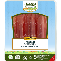 Über 4 Monate im handwerklichen Naturreifeverfahren ohne Nitritpökelsalz gereift, entwickelt der Ökoland Premium Schinken seinen unverfälschten Geschmack. Nur bester Schweineschinken wird hierfür verarbeitet, alles unter strengen Qualitätskontrollen. Bioland-zertifiziert. Ohne Nitritpökelsalz und andere Zusatzstoffe hergestellt. Von Natur aus glutenfrei, laktosefrei, natürliche Hefenbildung durch Fermentation. Innovative Verpackung aus Polypropylen (PP) bewirkt hohe Recyclebarkeit für die Kreislaufwirtschaft von Verpackungsmaterialien.