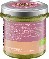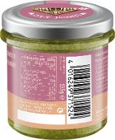 Spinat* 35%, Zwiebeln*, Zitronensaft aus Zitronensaftkonzentrat*, Sonnenblumenöl*, RICOTTA* (7%) (MOLKE*), Sonnenblumenkerne*, Agavendicksaft*, HARTKÄSE* 4% (KUHMILCH*, Speisesalz, Käsereikulturen, mikrobielles Lab), Kartoffelstärke*, Meersalz, Wasser, Senf* (Wasser, SENFSAATEN*, Branntweinessig*, Meersalz, Kurkuma*, Koriander*, Paprika* edelsüß, Piment*), Knoblauch*, schwarzer Pfeffer*, Muskatnuss*, Verdickungsmittel: Guarkernmehl*.| Energie | Fett | gesättigte Fettsäuren | Kohlenhydrate | Zucker | Ballaststoffe | Eiweiss | Salz |