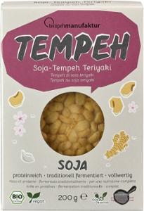 SOJABOHNEN* (SOJABOHNEN* 53 %, Wasser), Teriyaki-Sauce* 17 % (Wasser, Tamari* (Wasser, SOJABOHNEN*, Meersalz), Apfeldicksaft*, Apfelessig*, Meersalz, Knoblauch*, Zwiebel*, Ingwer*, Pfeffer*), Starterkulturen (Rhizopus)| Energie | Fett | gesättigte Fettsäuren | Kohlenhydrate | Zucker | Ballaststoffe | Eiweiss | Salz |