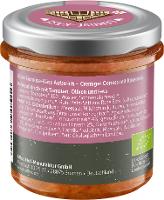 Tomaten* (16%), Wasser, Sonnenblumenöl*, Sonnenblumenkerne*, Rote Bete-Saft aus Rote Bete-Saftkonzentrat*, FETA* (6%) (SCHAFMILCH*, Meersalz, Milchsäurekulturen, mikrobielles Lab), Zitronensaft aus Zitronensaftkonzentrat*, Agavendicksaft*, Zwiebeln*, Karotten*, Tomatenmark* (4%), getrocknete Tomaten* (3%) (Tomaten*, Salz), schwarze Oliven* (2%), Kartoffelstärke*, grüne Oliven* (1,1%), Knoblauchpulver*, Paprika* edelsüß, Meersalz, Basilikum*, Oregano*, Chilipulver*. *| Energie | Fett | gesättigte Fettsäuren | Kohlenhydrate | Zucker | Ballaststoffe | Eiweiss | Salz |
