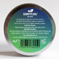 SCHETTLERs Pulver Typ 4 - Bio-Zahnputzpulver aus Rügener Heilkreide, Bio-Kräuter: Kamille, Salbei, Arnika, Thymian. Salzfrei und ohne Xylit!Dies ist ein Zahnputzmittel aus unverarbeiteten, natürlichen Zutaten - also ein reines Naturmittel, handwerklich hergestellt in Schwerin/Mecklenburg.Handhabung: Die feuchte Zahnbürste wird in das Pulver gedrückt, so dass etwas Pulver auf den Borsten haften bleibt. Damit putzt man sich nun wie gewohnt die Zähne. Nach dem Putzen sollte der Mund nicht allzu gründlich gespült werden, damit das alkalische Milieu im Mundraum erhalten bleibt. Dieses Milieu bietet einen starken Schutz gegen schädliche Bakterien, die für Karies und Zahnfleischentzündungen verantwortlich gemacht werden.Bitte beachten Sie: Unser Bio-Zahnputzpulver ist ein Naturprodukt ohne Rieselhilfen und ohne künstliche Geschmackskorrektur. Die sehr trockenen Kreidepartikel sammeln sich an den Salzkristallen oder Kräutern und Gewürzen und bilden manchmal kleine Klümpchen, dies stellt keinen Mangel dar. Die Klümpchen lösen sich im Mund sofort auf. Lassen Sie die Dose nach dem ersten Benutzen leicht geöffnet im Bad stehen, so kann überschüssige Feuchtigkeit entweichen.SCHETTLERs Bio-Zahnputzpulver sind die besten rein natürlichen Alternativen zu künstlich-chemischen Zahnpflegemitteln und sind unbedenklich für Kinder und Schwangere. Das Pulver ist verpackt in einer Schraubdeckeldose aus Weißblech.