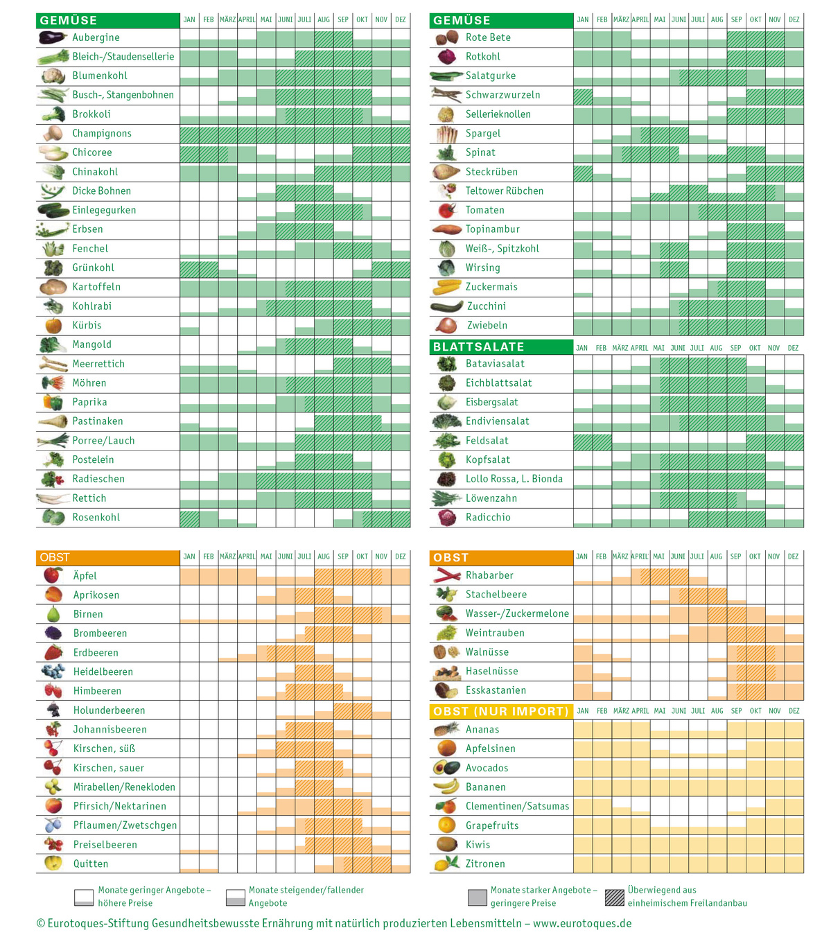 Jede Jahreszeit hat ihre besonderen Genüsse. Deshalb richtet sich unser Gemüse- und Obstangebot weitgehend nach dem Lauf der Natur. Wir beziehen unsere Frischwaren direkt von Öko-Bauern aus der Region und geben regionalen und saisonalen Produkten immer den Vorrang. Im Winter bereichern wir unser Angebot mit Obst und Gemüse aus südlicheren Gefilden.